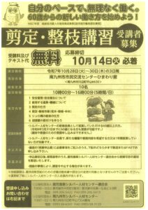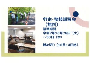 令和7年10月28日~30日までの間、参加費・教材無料の「剪定・整枝講習会」が開催されます。